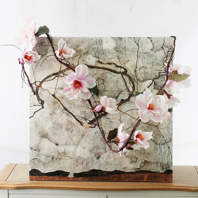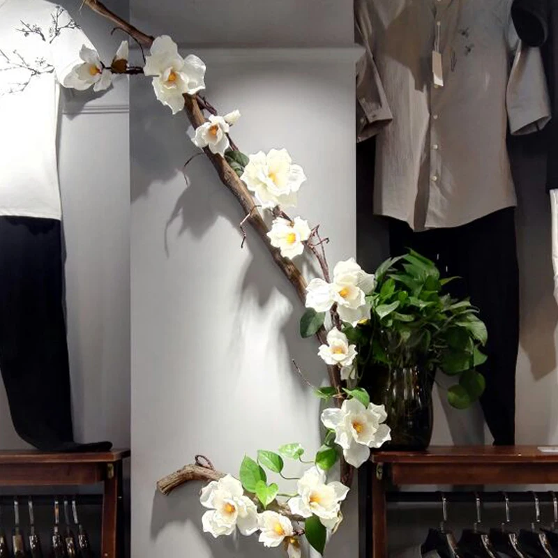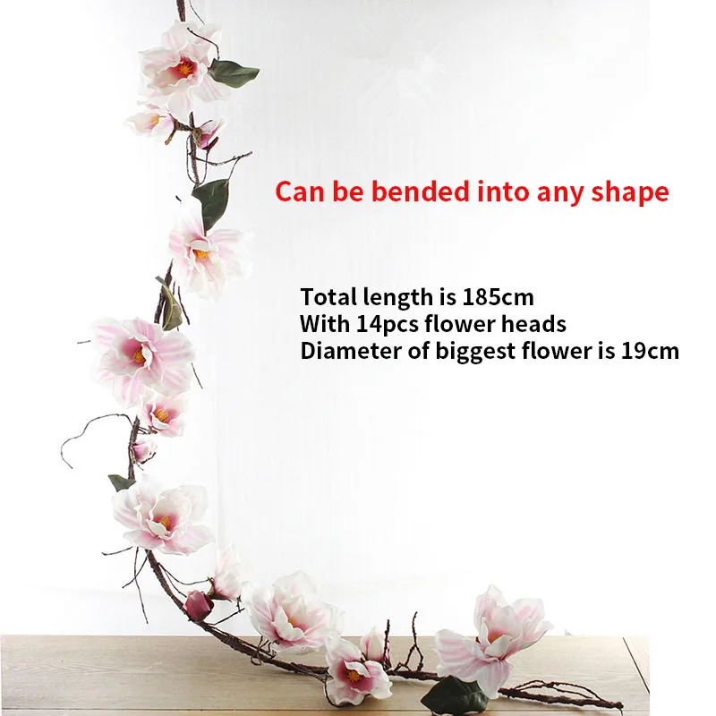 Buy vine Artificial Magnolia flower cane fake flower branches wedding flower wreath string magnolia sil