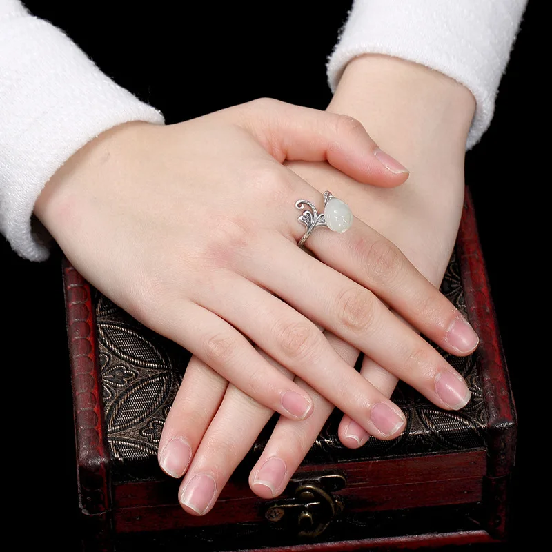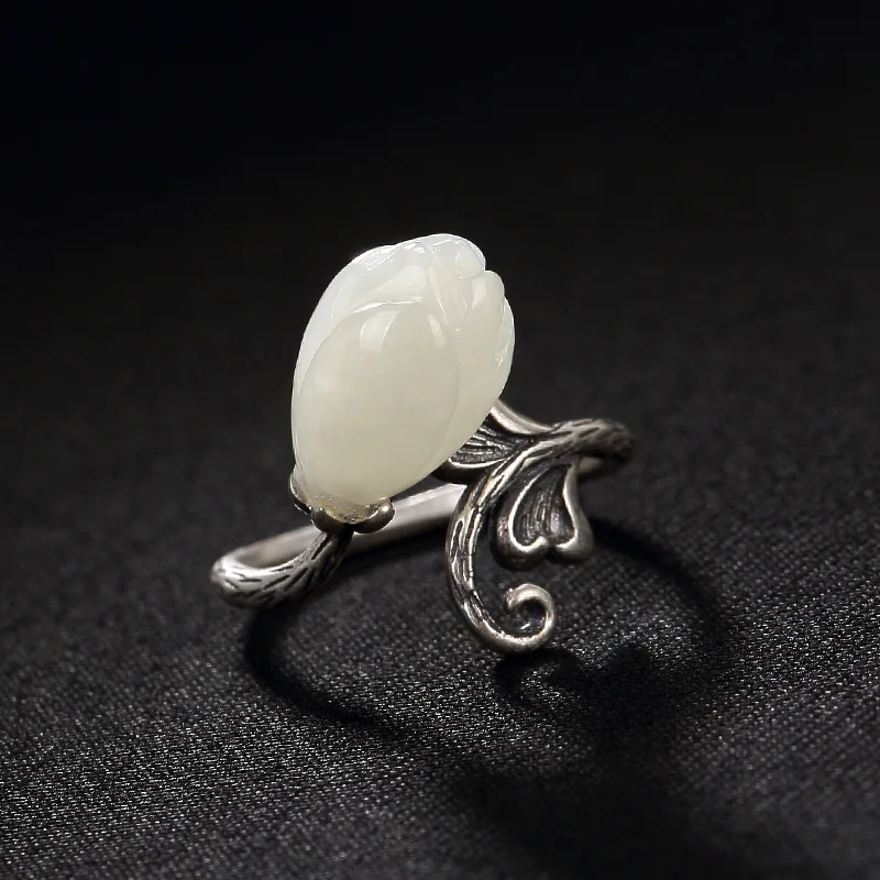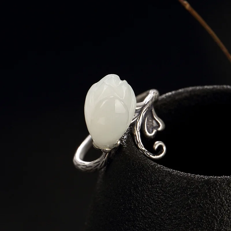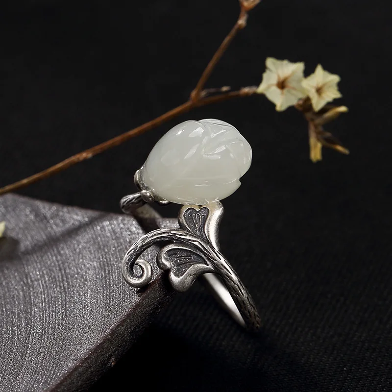 Buy 2018 Time-limited Anel Feminino S925 Pure Natural Hetian Jade Magnolia Flower Antique High-grade Op