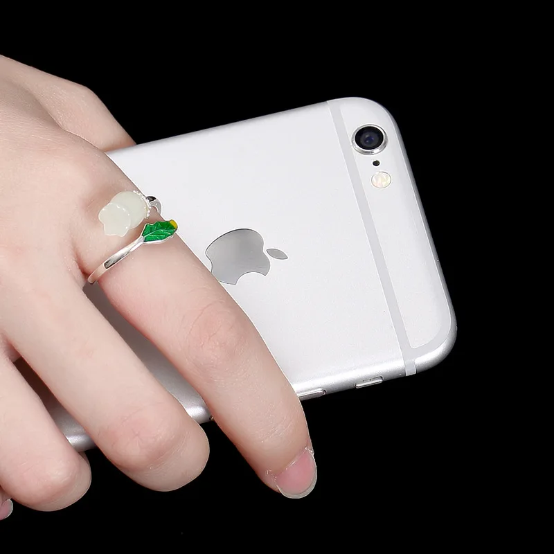 New Anel Feminino Limited 2018 New S925 Pure Hetian Inlay Magnolia Cloisonne Female Wholesale High-grad
