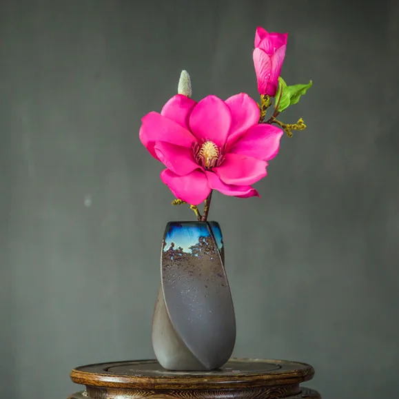 Best New Chinese Ceramic Vase+Dried Flower Magnolia Artificial Flower Set Livingroom Fake Flower Pot Dis