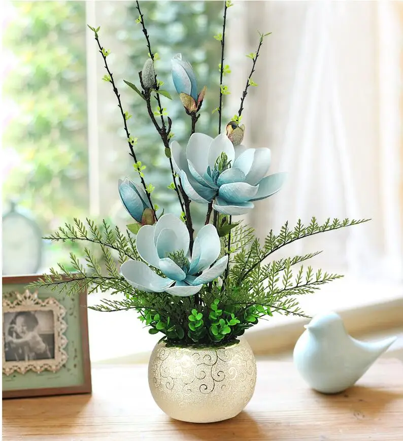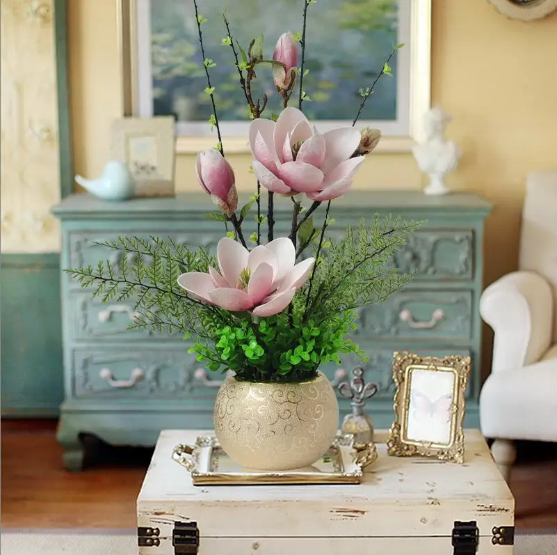 Buy Modern Magnolia Flower+Artificial Flower Home Furnishing Decoration Flowerpot Livingroom Desktop Fl