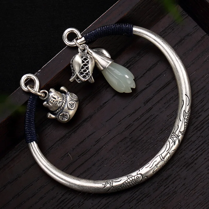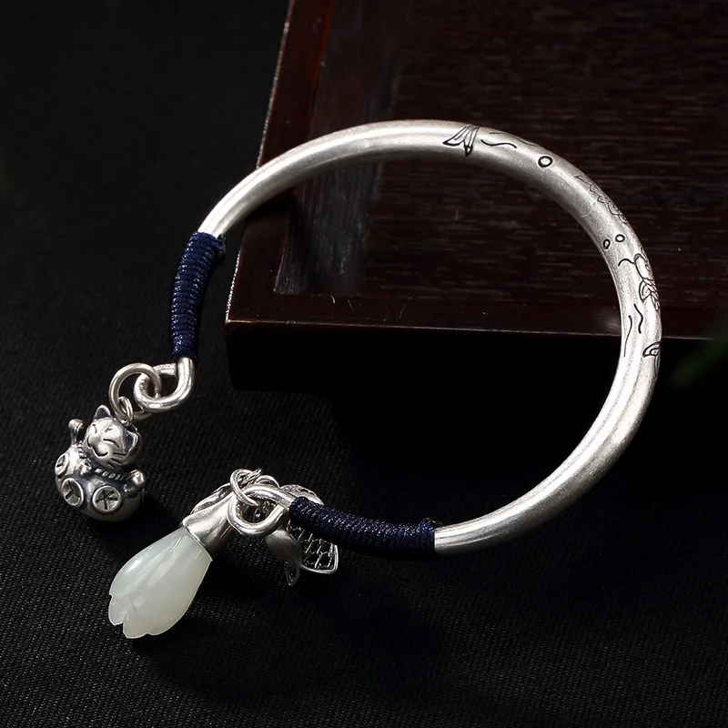 New carp restoring ancient ways is the lotus plutus cat hetian jade magnolia flower bracelet wholesale