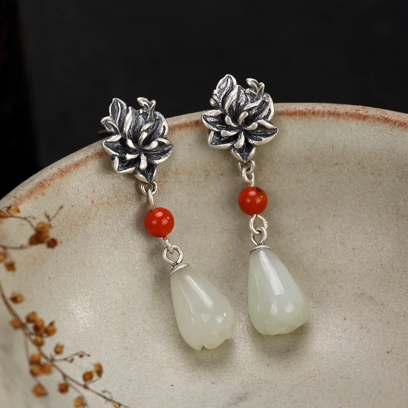 Promo 2018 Hot Sale Special Offer Anniversary Brinco Pure Natural Hetian Jade Magnolia Flower South Mosai