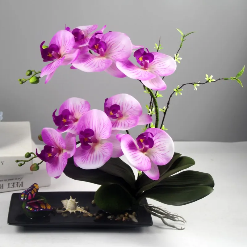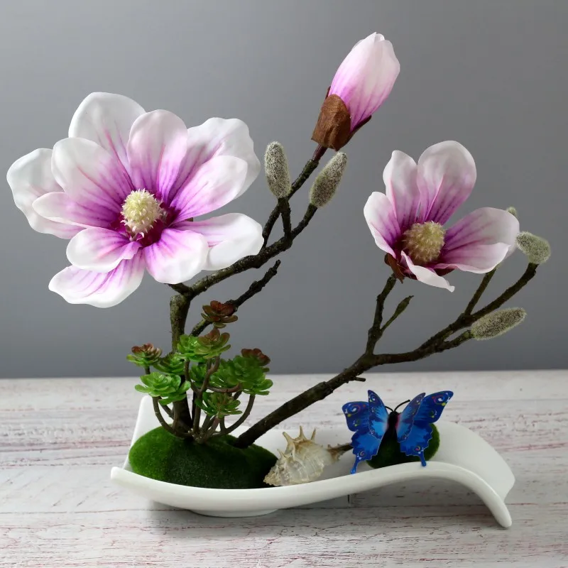 Promo Modern Ceramic Vase Figurines+Magnolia Phalaenopsis Artificial Flower Pot Home Hotel Desktop Fake F