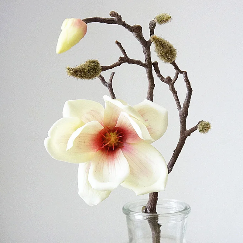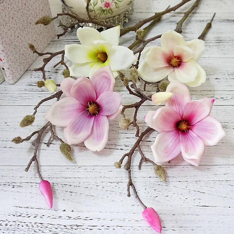 Buy 1 heads Fake Floral 3D Colors Decorative Magnolia Flower Real Touch Big Silk Orchid Branch For Wedd