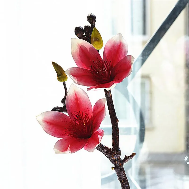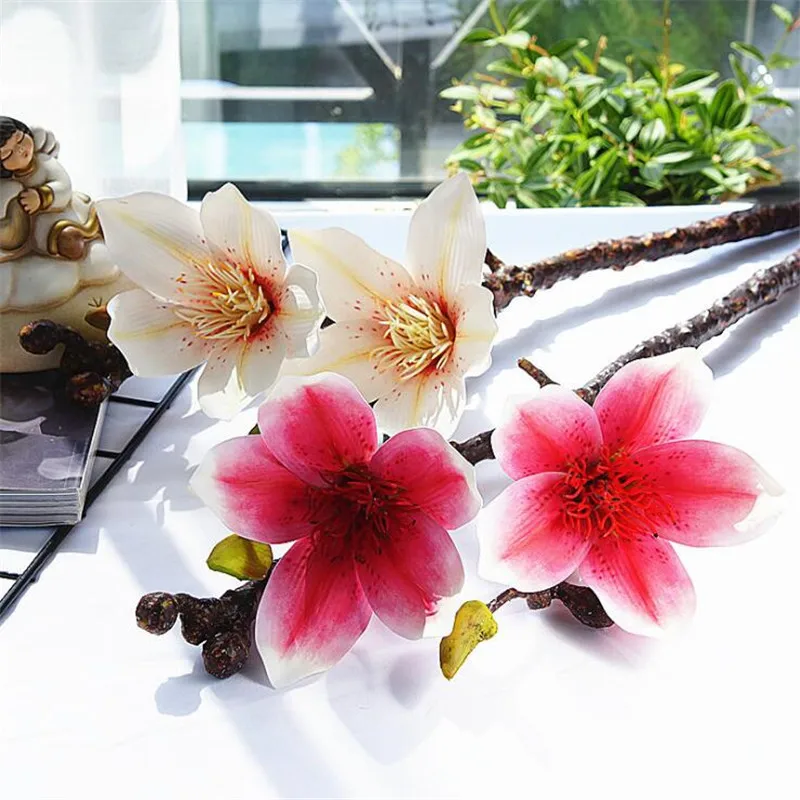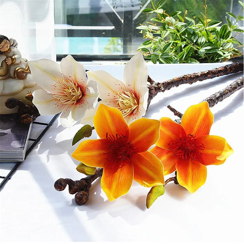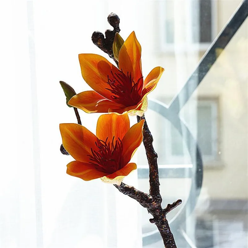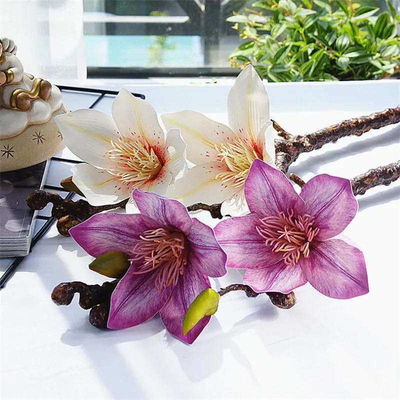 New PU Single Stem Magnolias (2 heads/piece) Artificial Flowers 3D Real Touch Magnolia Gradiflora for W
