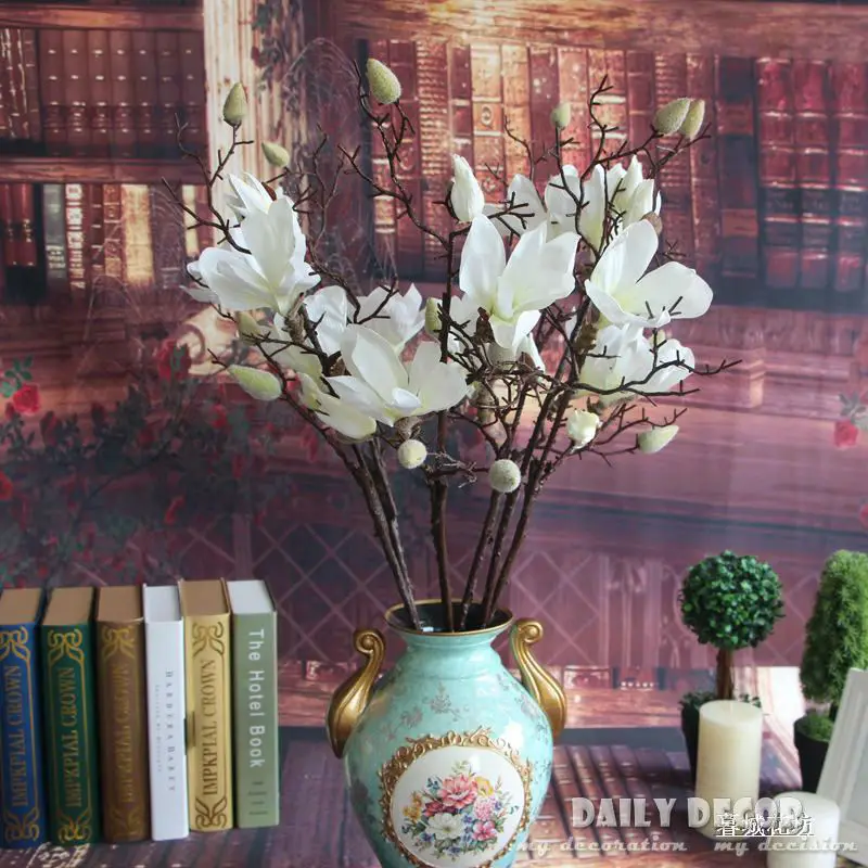 Promo 5pcs/lot wholesale 80cm Magnolia decorative artificial silk flower long stem fake white magnolias