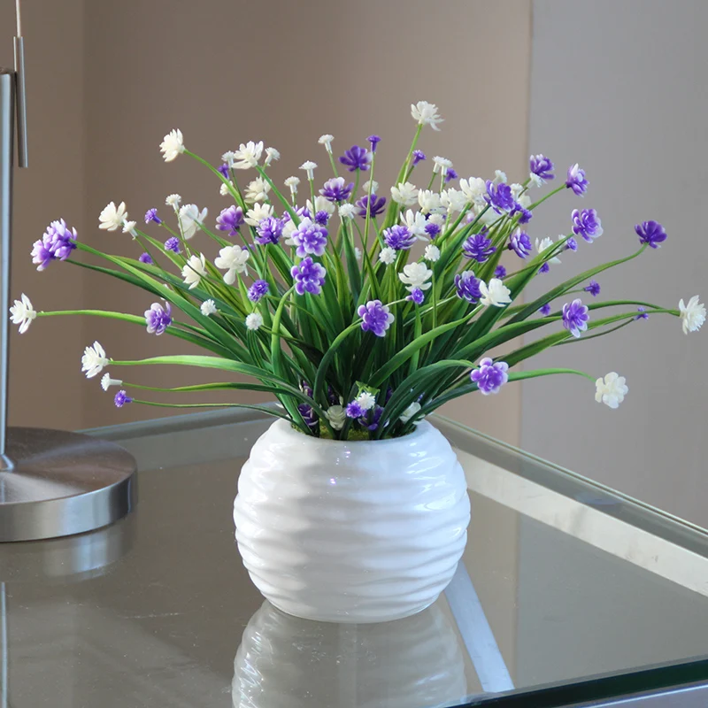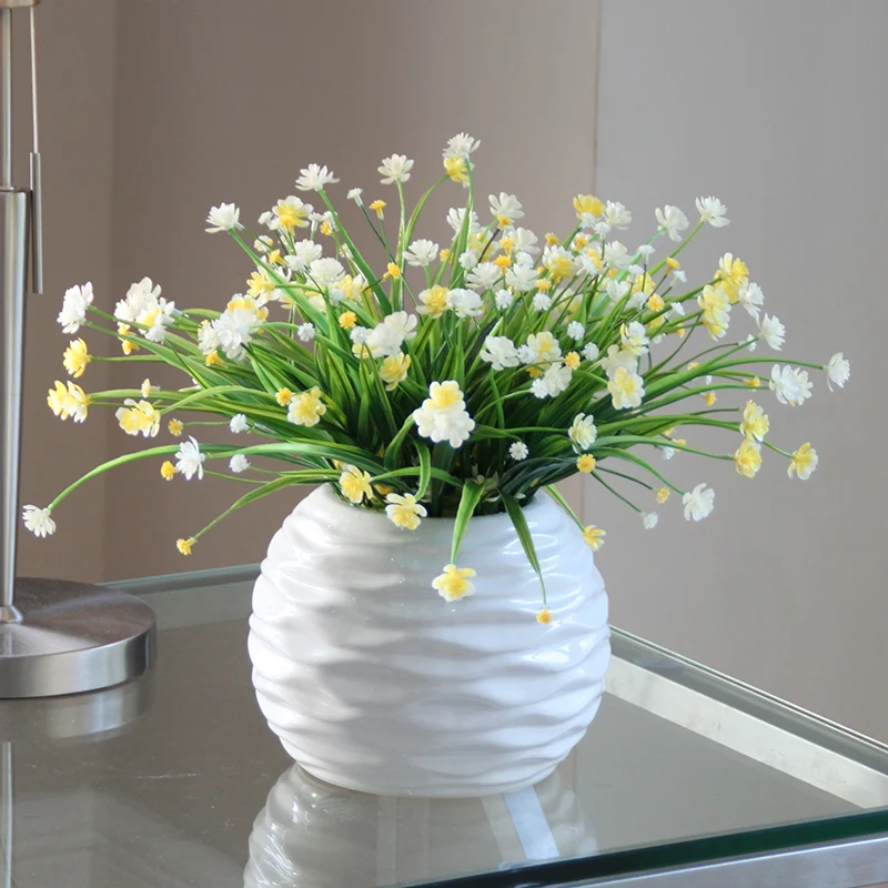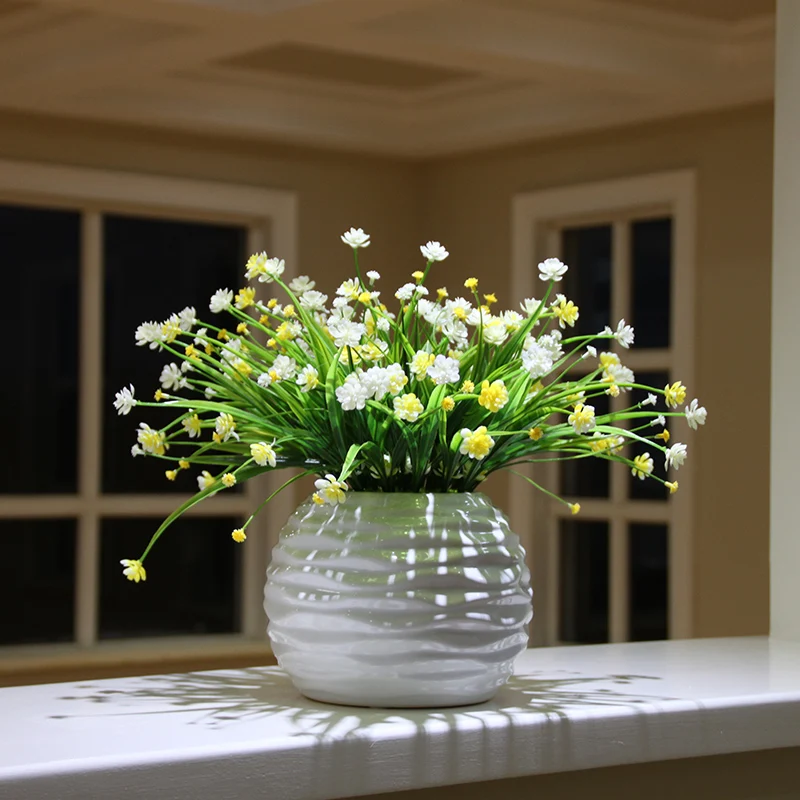 New White Tabletop Artificial Potted set Ceramic vase Artificial green plants Small bonsai pot culture