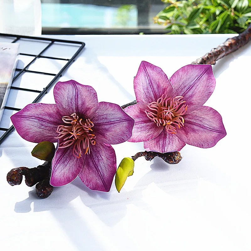 Buy Luxury Simulation 3D plastic film Magnolia artificial flowers home window beauty decoration fake fl