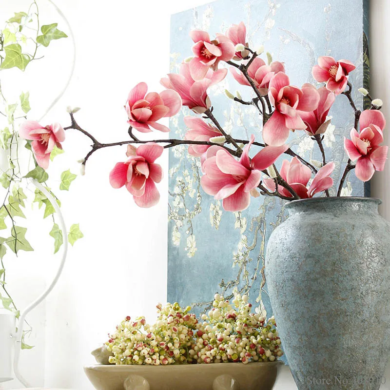 Promo HI-Q 3D Colors Decorative Magnolia Flower Real Touch 7 Heads Big Size Silk Orchid For Wedding Home