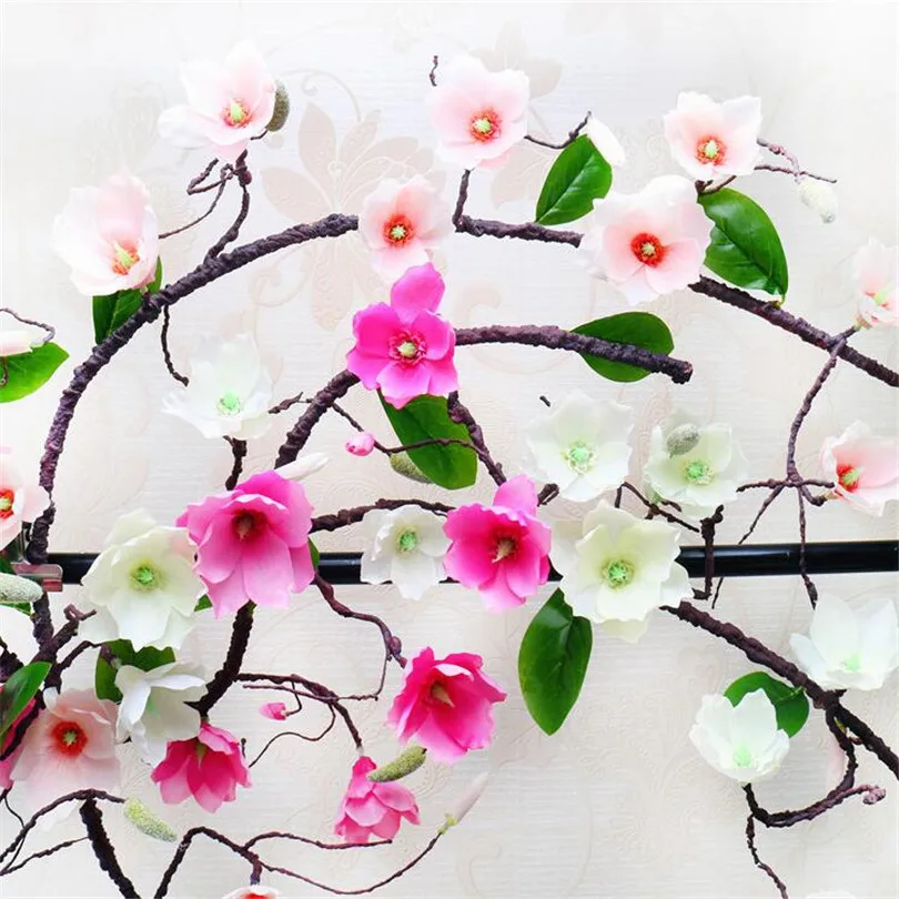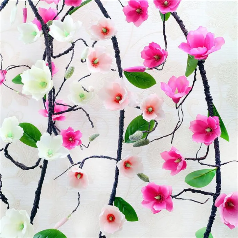 Best 10pcs Fake Magnolia Flower Vine Silk Flower Vines 180cm Cream/Champagne/Pink Magnolia for Home Wall