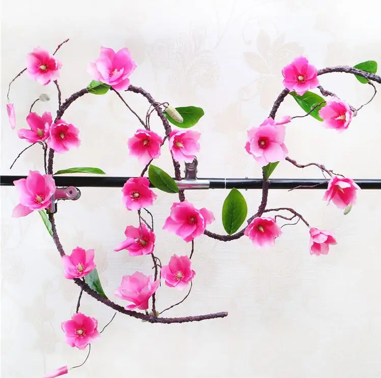 Promo 10pcs Fake Magnolia Flower Vine Silk Flower Vines 180cm Cream/Champagne/Pink Magnolia for Home Wall