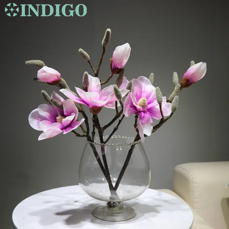 Promo INDIGO- 3pcs Magnolia Purple Heart Short Mangnolia Artificial Real Touch Flower Wedding Flower Home