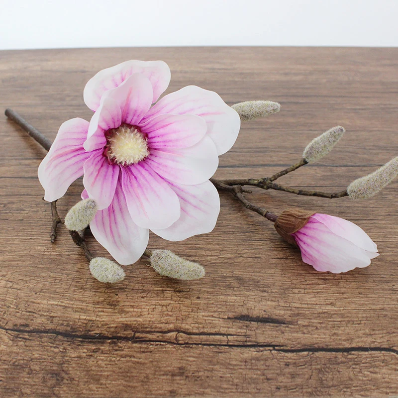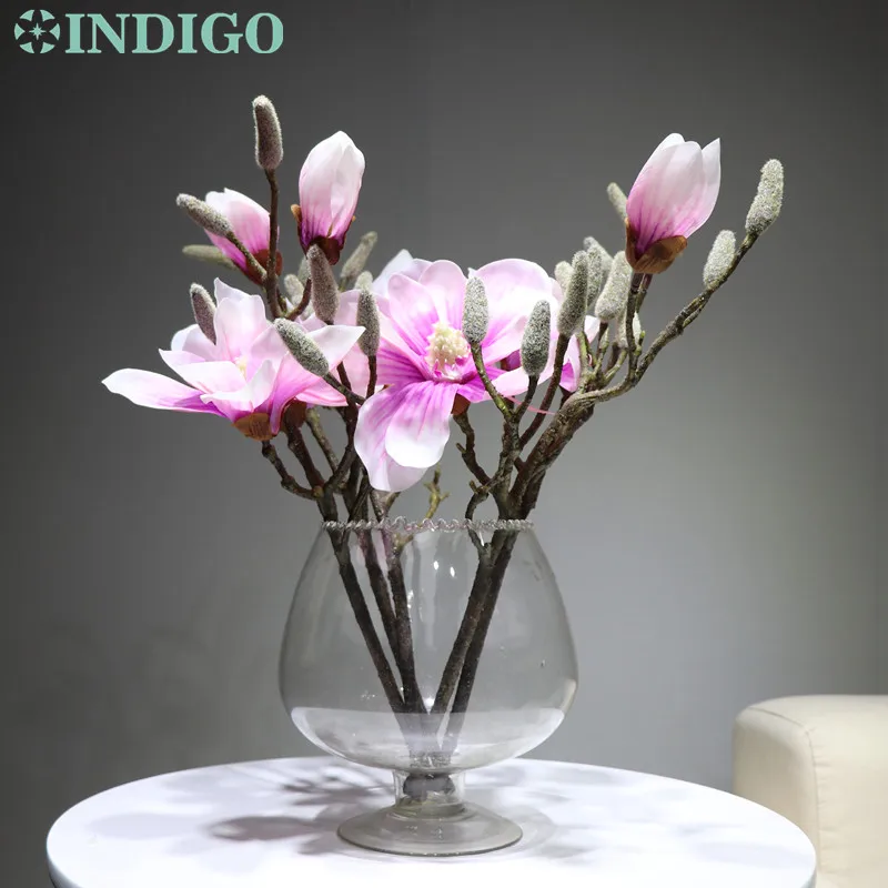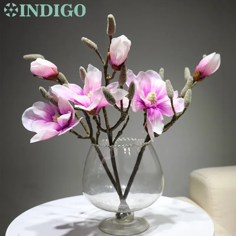 Buy INDIGO- 3pcs Magnolia Purple Heart Short Mangnolia Artificial Real Touch Flower Wedding Flower Home
