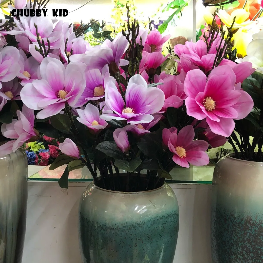 Best 12pcs Wholesale 6 heads large Real touch Magnolia long stem wedding decorative artificial Silicone