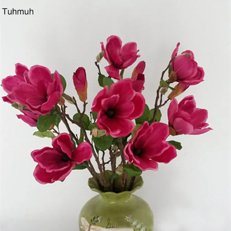 Best 5pcs Long Artificial Magnolia Flowers Silk 12cm Dia Head Real Touch Fake Shrubalthea Flower Orchid