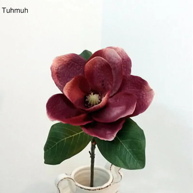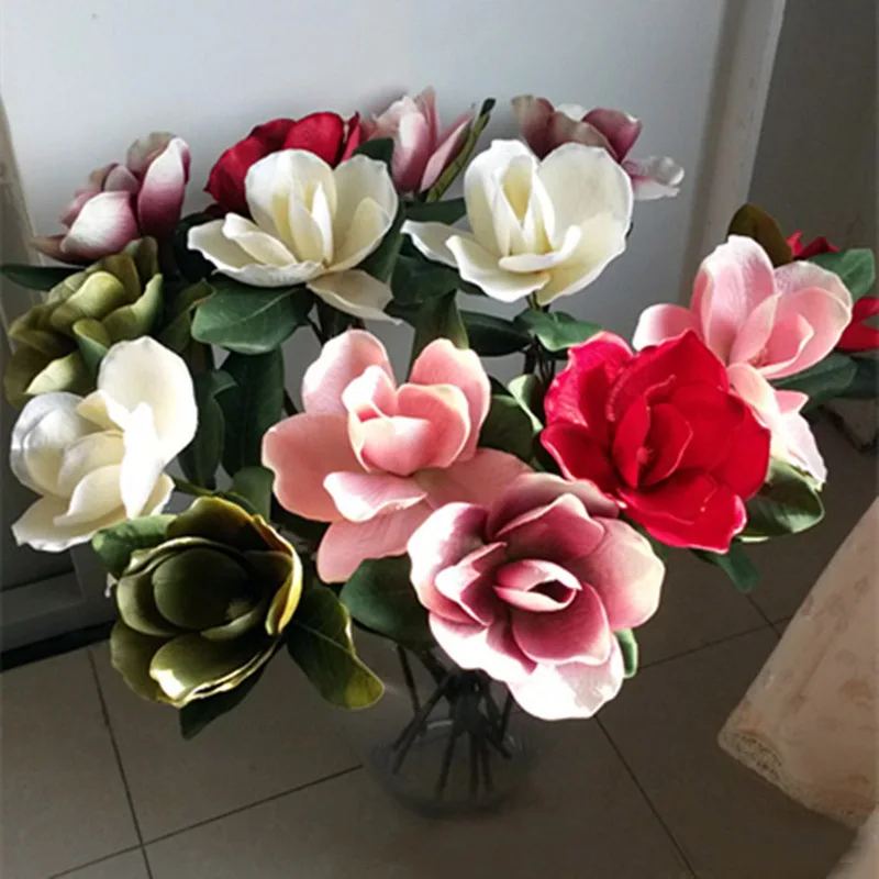 New 90cm Long Artificial Flowers Silk 20cm Single Head with Leaf Fake Kapok Magnolia Flower Plants Wedd