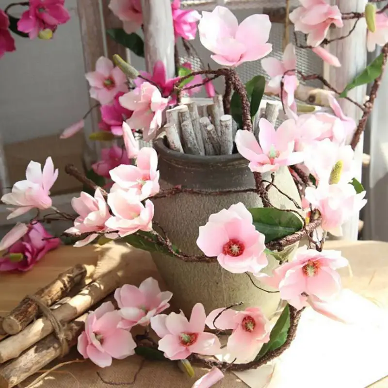 New 70 Inches Magnolia Orchid Flower Vine Artificial Flower Fake Flower Rattan Wedding Arch Decoration